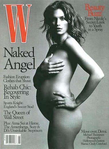 Saat dunia modeling sudah beradaptasi dengan pose wanita hamil tanpa pakaian, hadirlah seorang supermodel Cindy Crawford yang berani untuk mencobanya. Pada tahun 1999, mantan istri dari Richard Gere ini berani memamerkan perut buncitnya di hadapan kamera yang kemudian dimuat dalam majalah W.