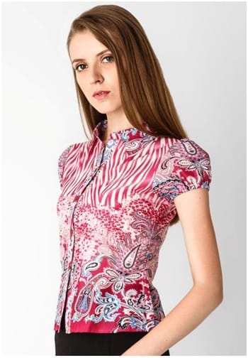 Blouse Batik Pasley di atas merupakan baju yang memiliki bahan poliester sehingga sangat cocok digunakan bagi Anda yang banyak beraktivitas di ruangan ber-AC. Baju ini memiliki detail batik pada bagian kerahnya yang dipadu dengan lengan pendek yang semakin membuatnya tampak elegan.