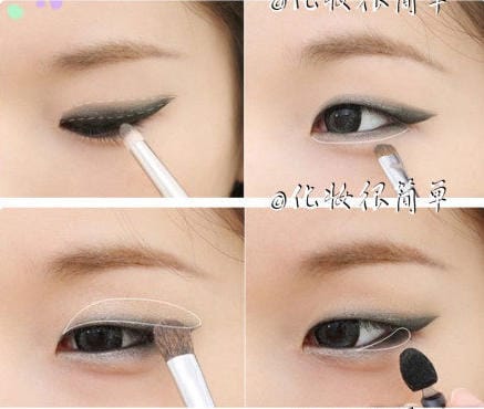 Penggunaan dari eyeliner, eyeshadow, dan juga maskara merupakan kombinasi yang wajib bagi wanita Korea.